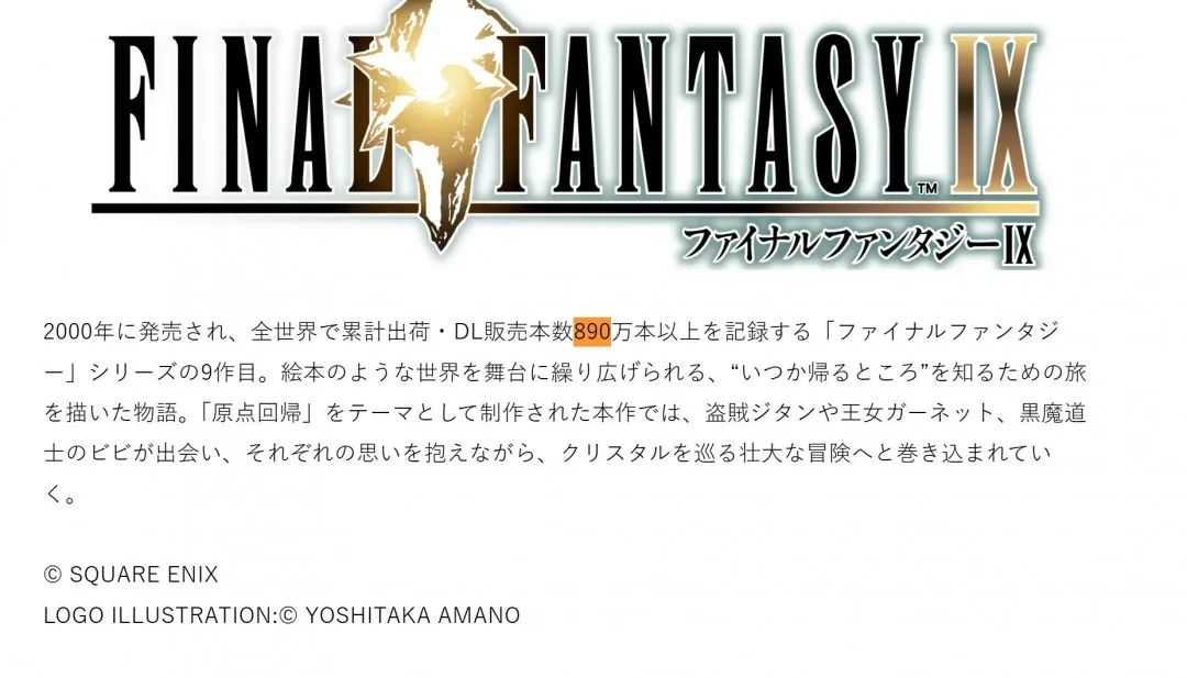 "Final Fantasy 9" Reaches 8.9 Million Copies in Global Sales