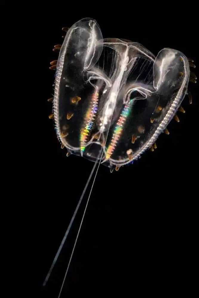 With their ethereal, translucent bodies and eight rows of ciliated plates that resemble combs, comb jellies, or ctenophores, are among the most captivating creatures in the marine world. These delicate organisms have earned their name from these distinctive "comb plates," which shimmer with iridescent hues as they move through the water.