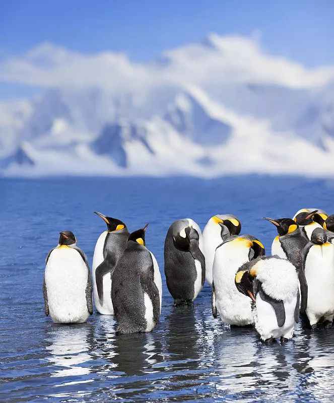 The penguin family is vast, with as many as 19 species. The tallest ones are the "emperors": the Emperor Penguin and the King Penguin. They are characterized by the yellow fluff on their necks. (The Emperor Penguin is taller than the King Penguin.)