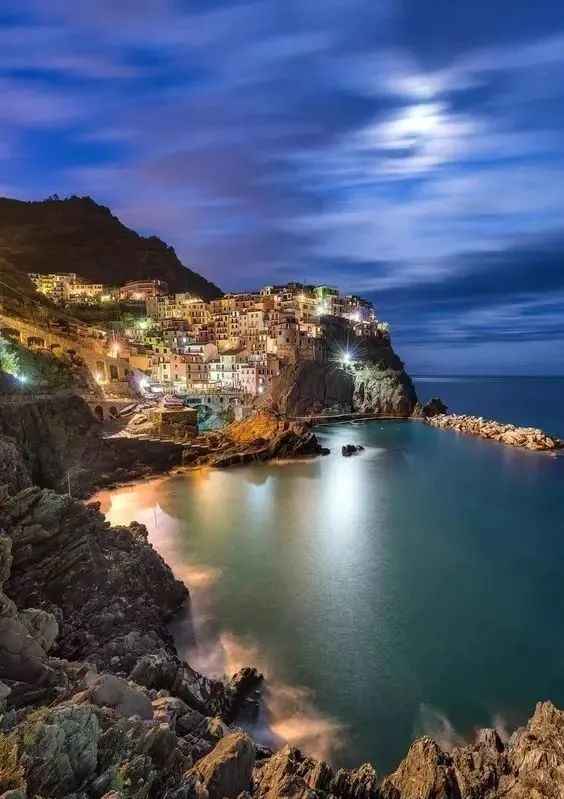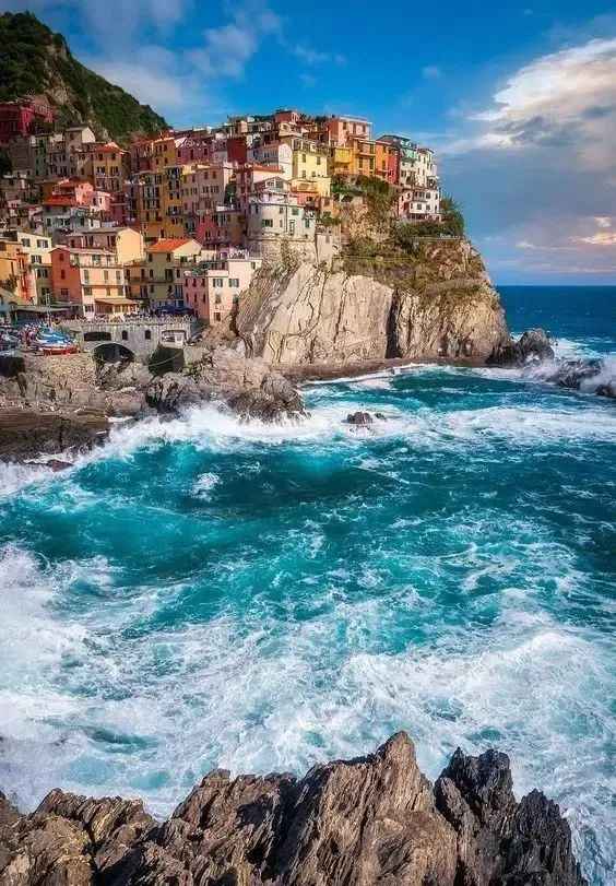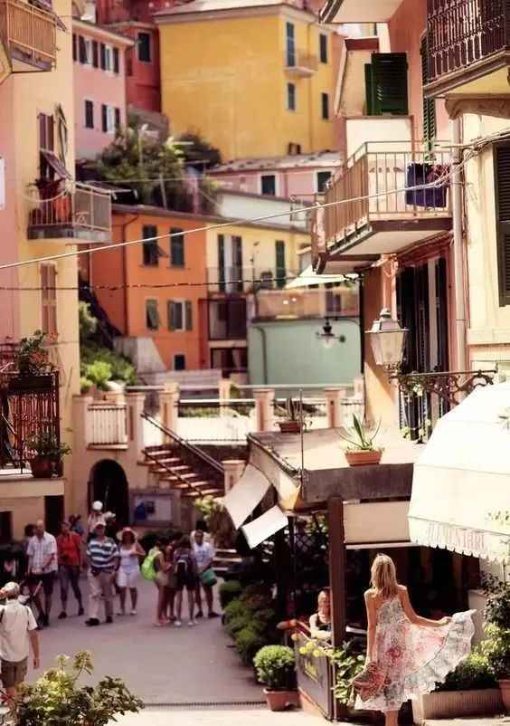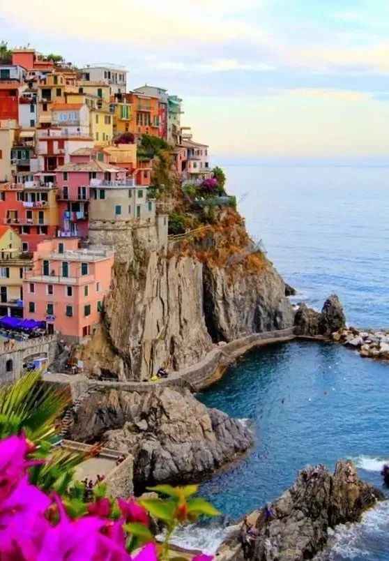 On Italy's proud list of world heritage sites, the Cinque Terre, nestled among mountains and by the sea, is definitely a town that is both ordinary and unique. From its geographical environment to its natural landscape, this colorful fishing village is like a mythical town, hanging on the cliff. Here, people don't need to rely on mobile phones to keep in touch because they can meet acquaintances by chance on the streets of the small village at any time. When you avoid the crowds, walk along the plank road, climb to the top of the mountain, and face the sea, you will see the colorful houses edged with golden light from the sun, and the whole world seems to be shining brightly.