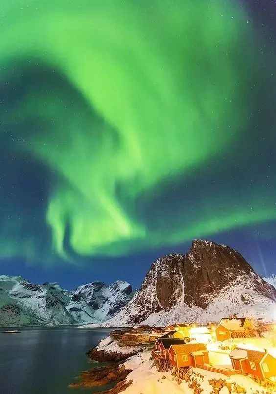 Hamnoy Town is located along the coast of Norway. Most of the houses in the town are built with red painted wood, which forms a sharp contrast with the cold Norwegian winter. Here, you also have the opportunity to admire the beautiful aurora, and that gorgeous scenery is so stunning that it takes your breath away.