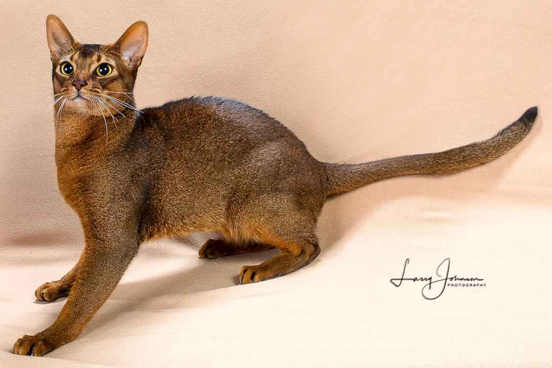 Personality-wise, Abyssinians are lively, intelligent, and curious—often called the "Border Collies of the cat world" for their trainability and interactive nature 1011. They thrive on climbing and leaping (capable of jumping 6 feet) while balancing loyalty with independence, preferring to perch on shoulders rather than be held 911. Despite their wild aesthetic, they are affectionate with families, including children and other pets, making them ideal for active households 310.