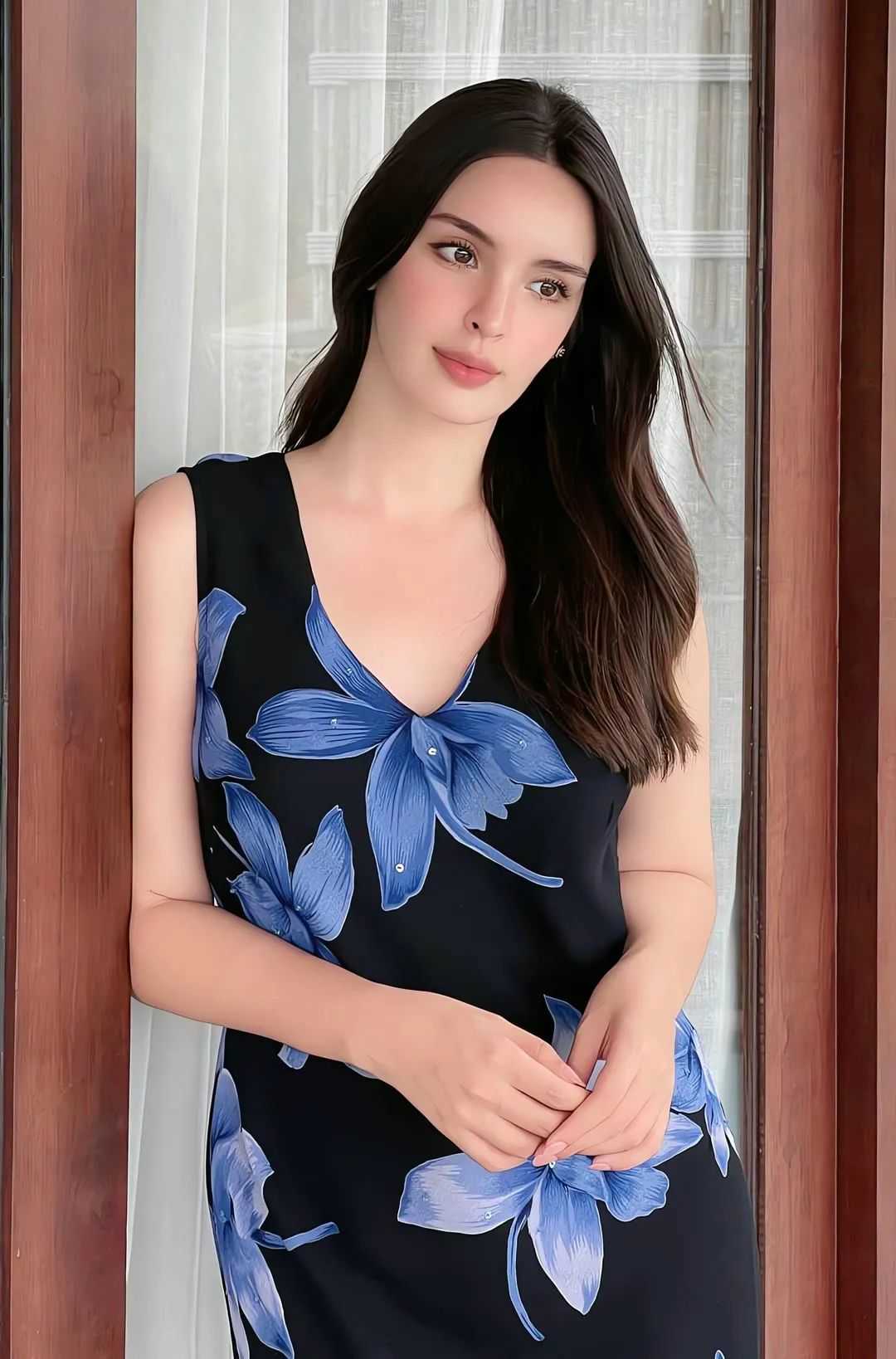 In a rocky coastal cove, the model balances in a tree pose, her body silhouetted against crashing waves. The wind tugs at her yoga attire, yet her focus remains unshaken, a testament to her discipline. Elsewhere, she reclines in a field of wildflowers, eyes closed, hands resting lightly on the earth. The soft pastels of the blossoms and the gentle slope of the hills behind her create a sense of deep relaxation, as if the photo itself is a moment of meditation.